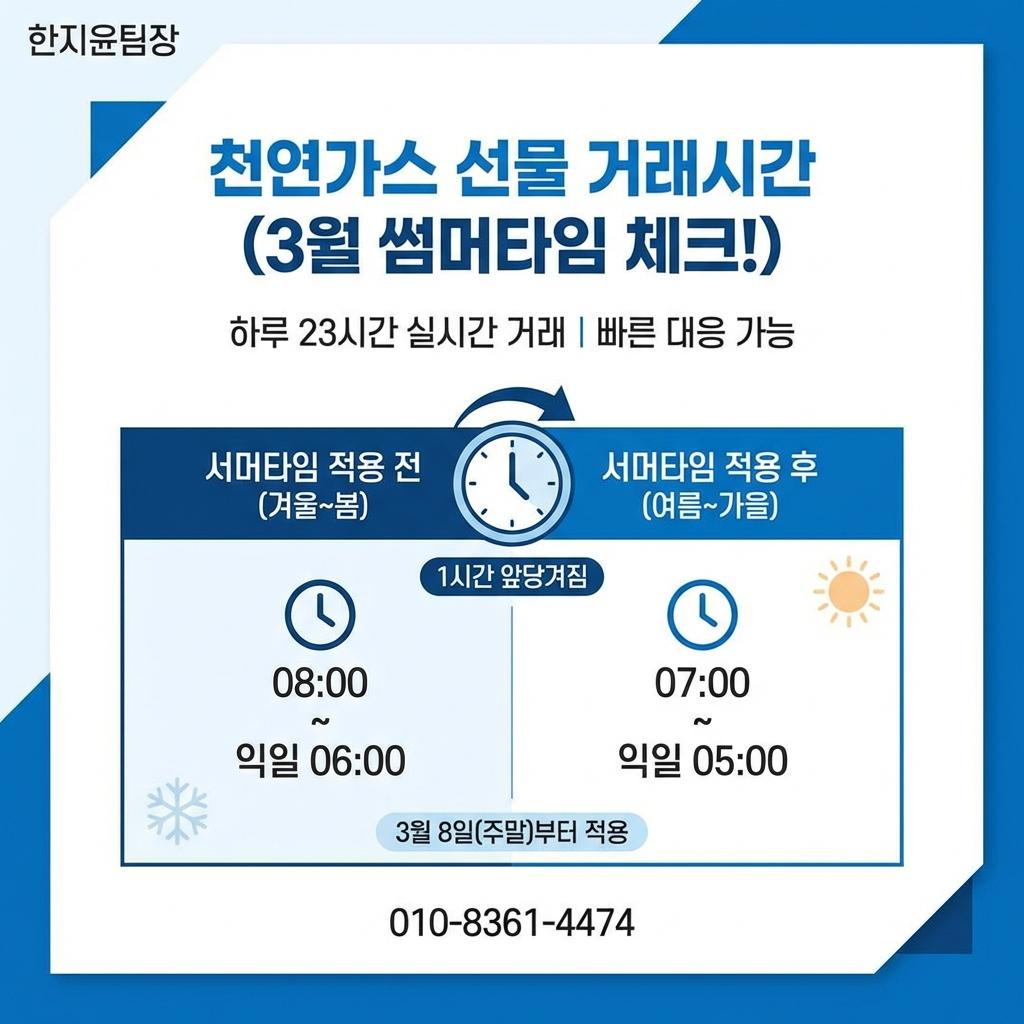 ⏰ 천연가스 선물 거래시간 (3월 썸머타임 체크!)