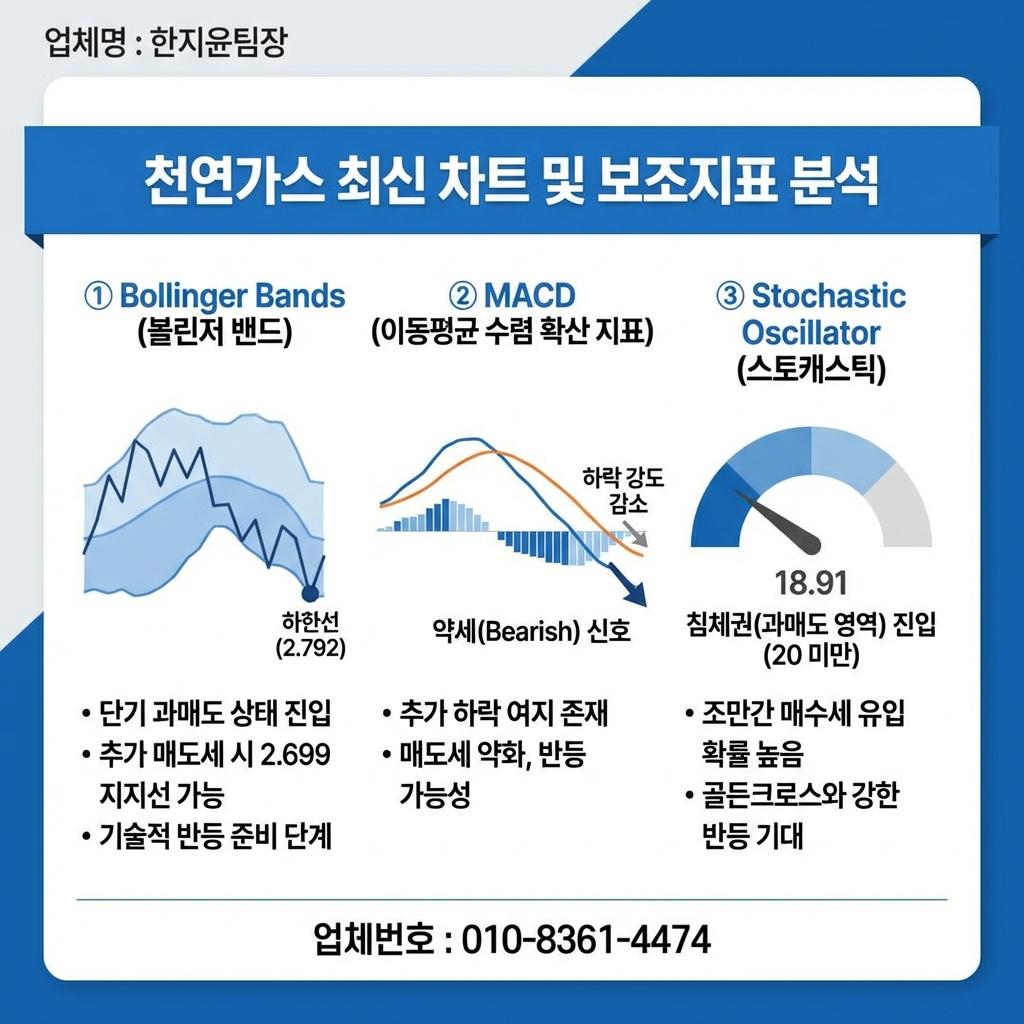 투자에 있어 감(Feeling)은 금물입니다! 철저한 기술적 분석(보조지표)이 뒷받침되어야 하죠. 최근 천연가스 차트의 흐름을 3가지 핵심 지표로 분석해 보았습니다.